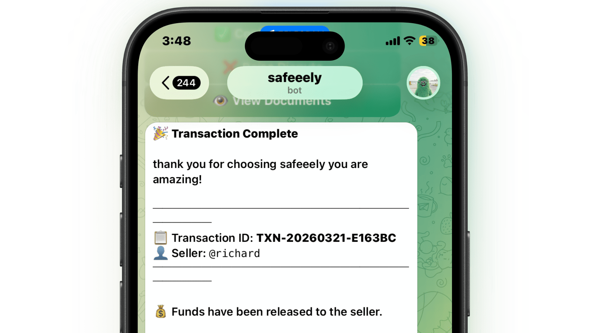 Whether you're dealing on Telegram, Discord, or Web, initiate and manage secure escrows without ever leaving your favorite app.